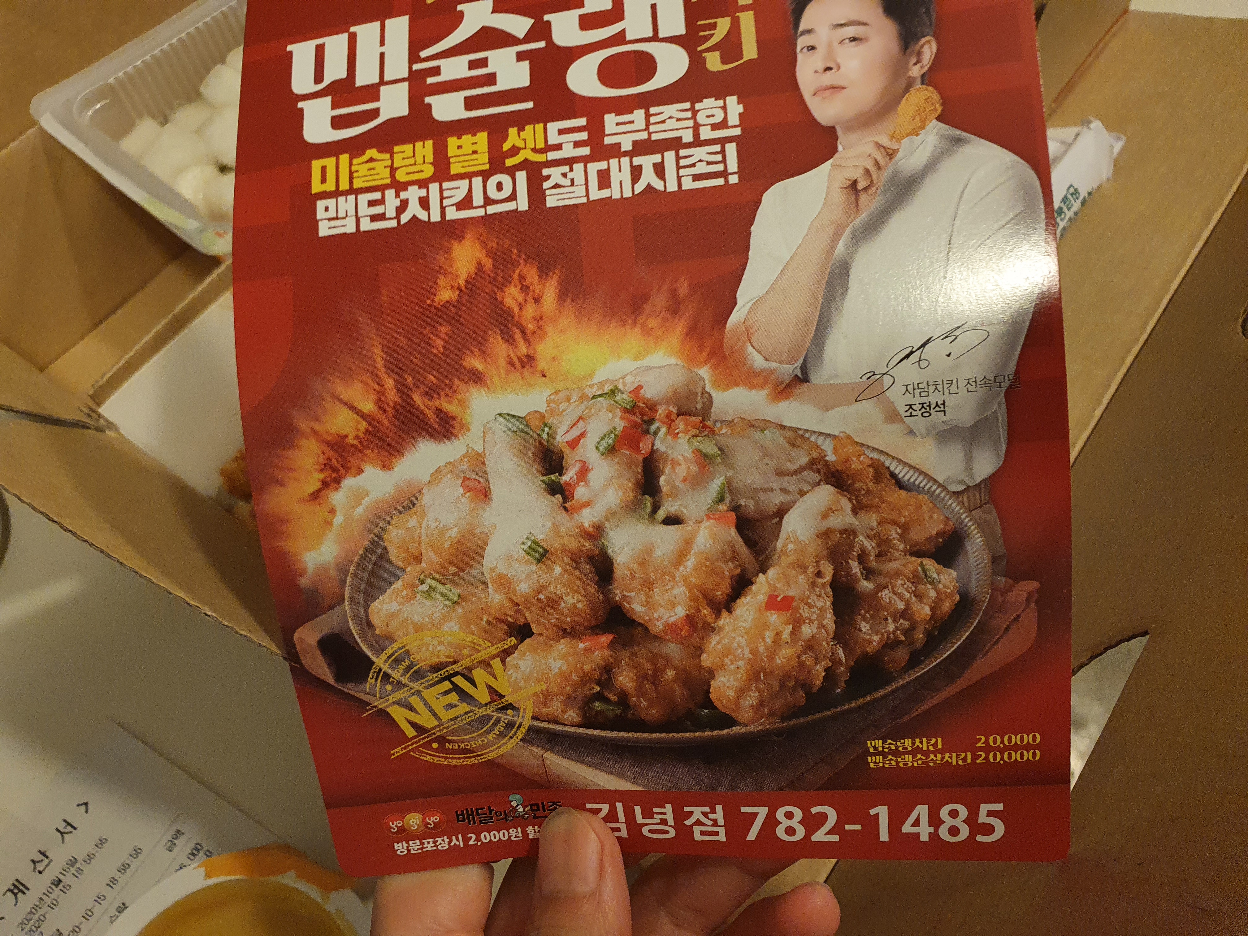 자담치킨에는 주로 맵소이닭을 주문하는데,
