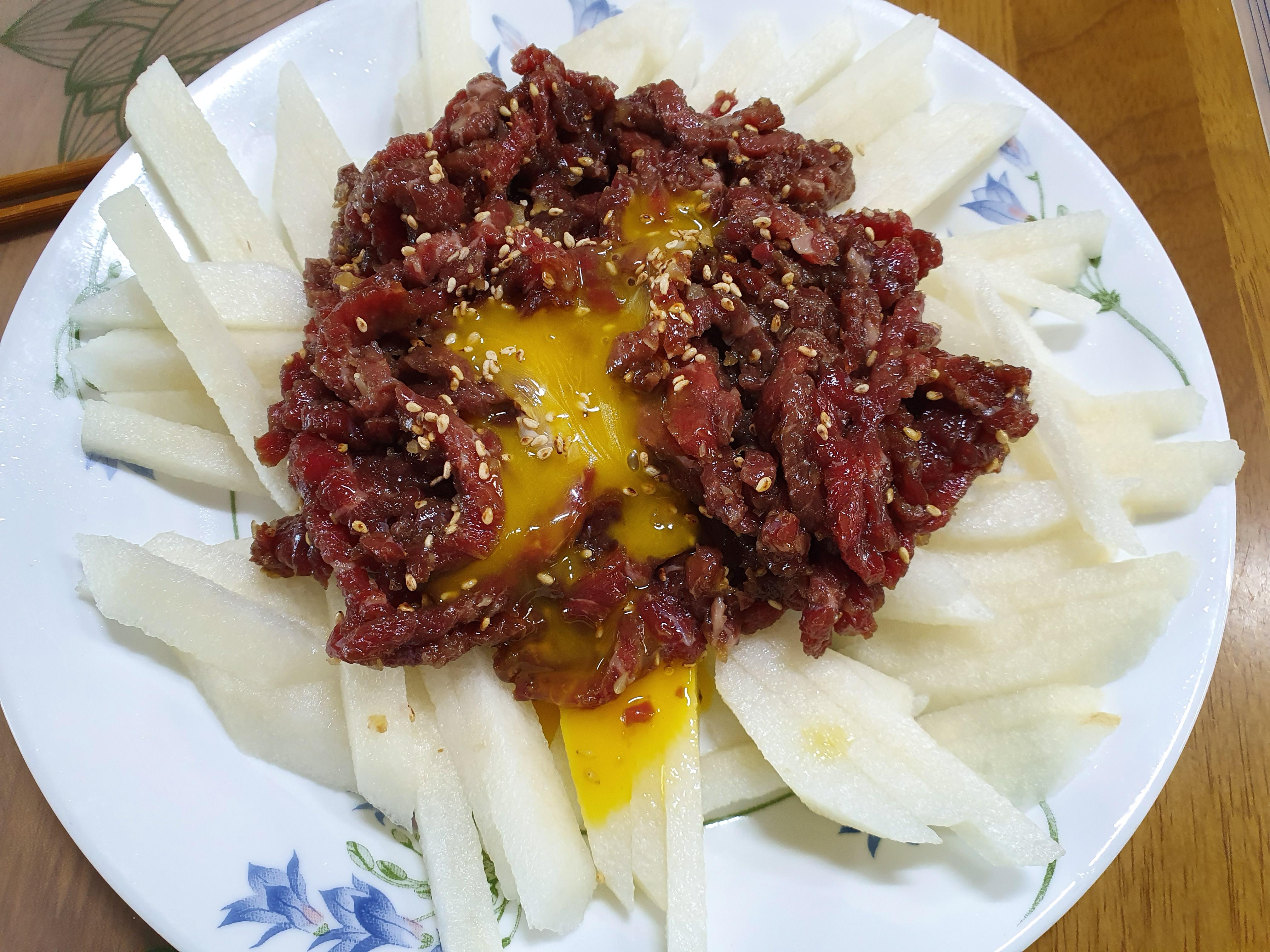 배와 육회는 어쩜 이리도 잘 어울리는가