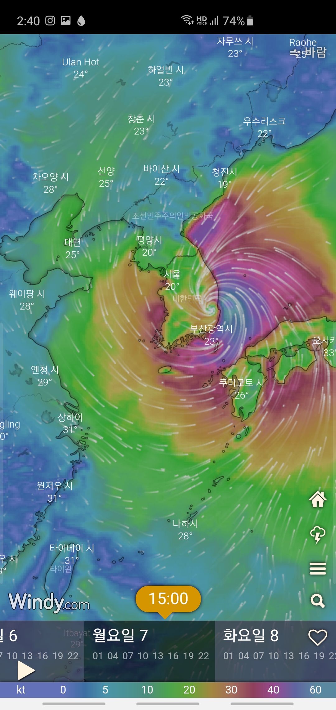 그래도 태풍의 사이즈가 큰 만큼
