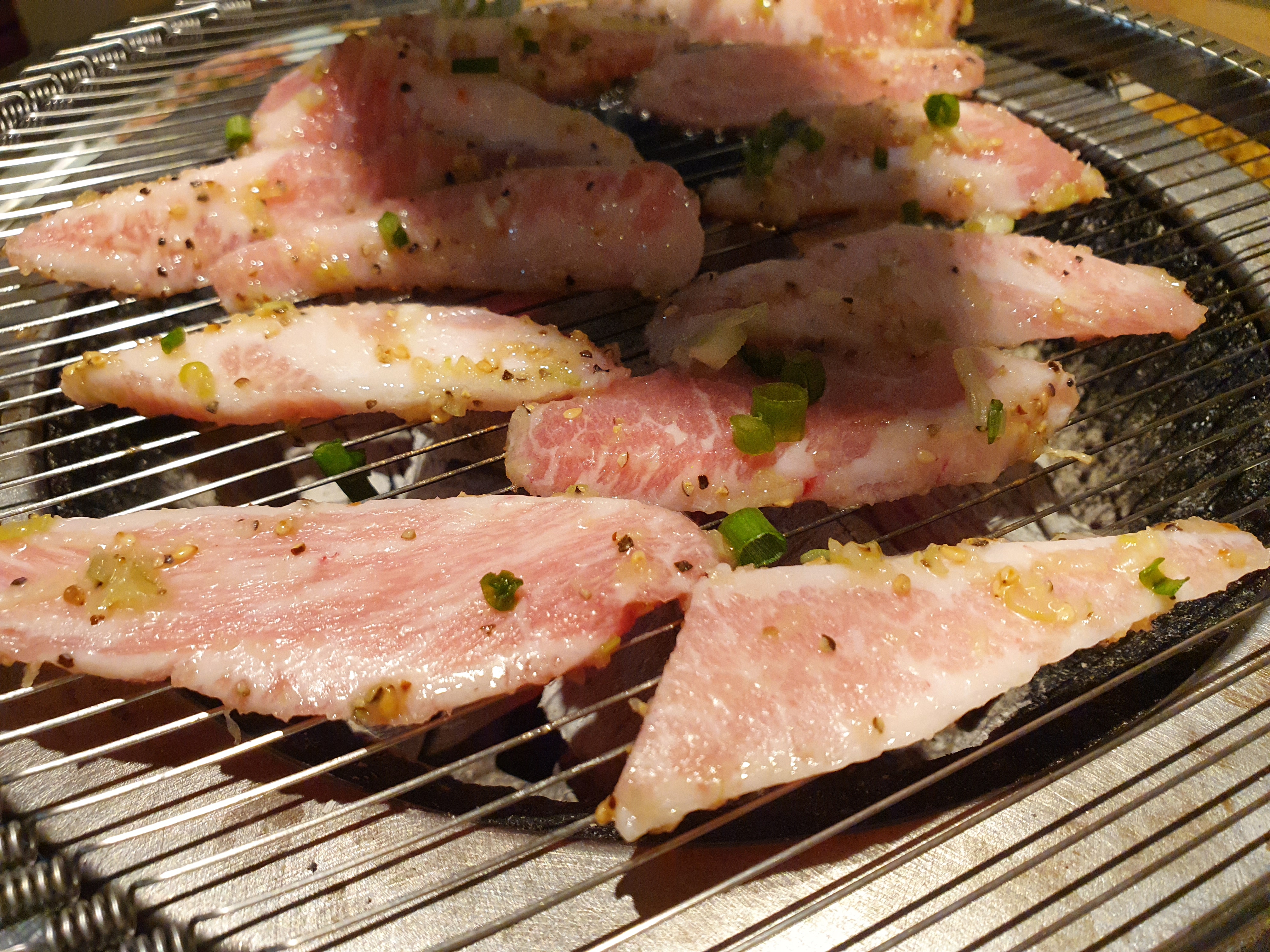 고기가 잘 익으면 상추에 싸서 멜젓을 찍고 파채를 올려 먹는다