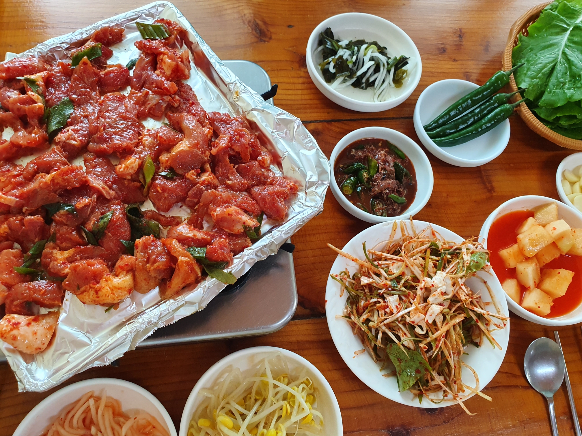 직접 만든 소스에 재운 돼지갈비가 맛있고