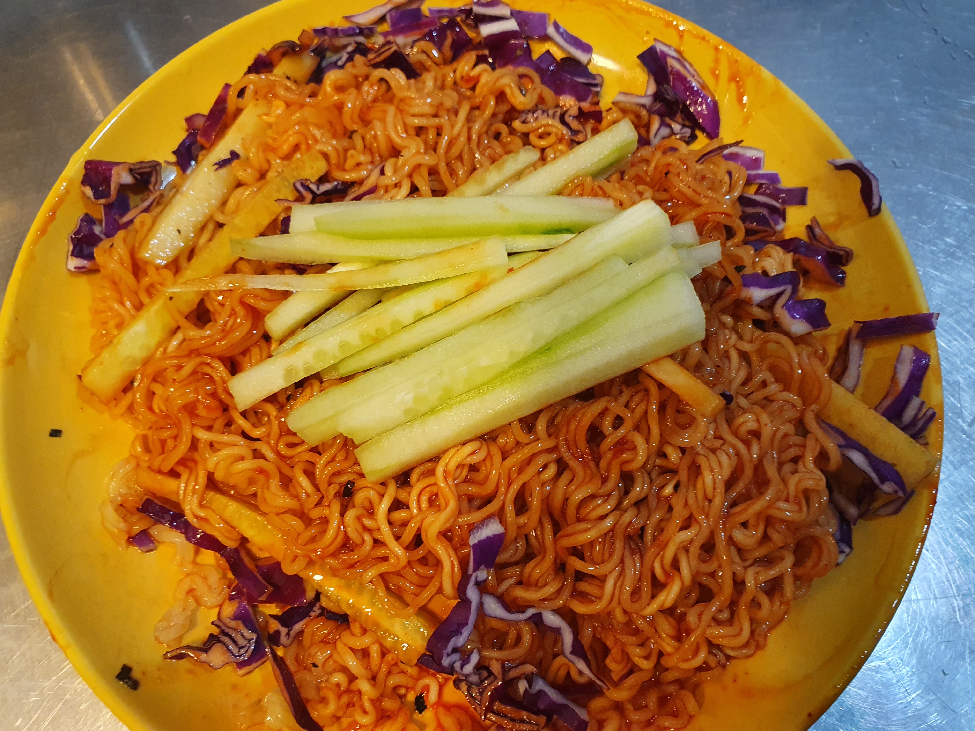 평소 같았으면 비빔면은 얼음물에 헹구지만