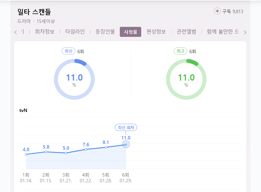 6회차가 방송된 1월 29일에는 시청율 11%를 달성했다.