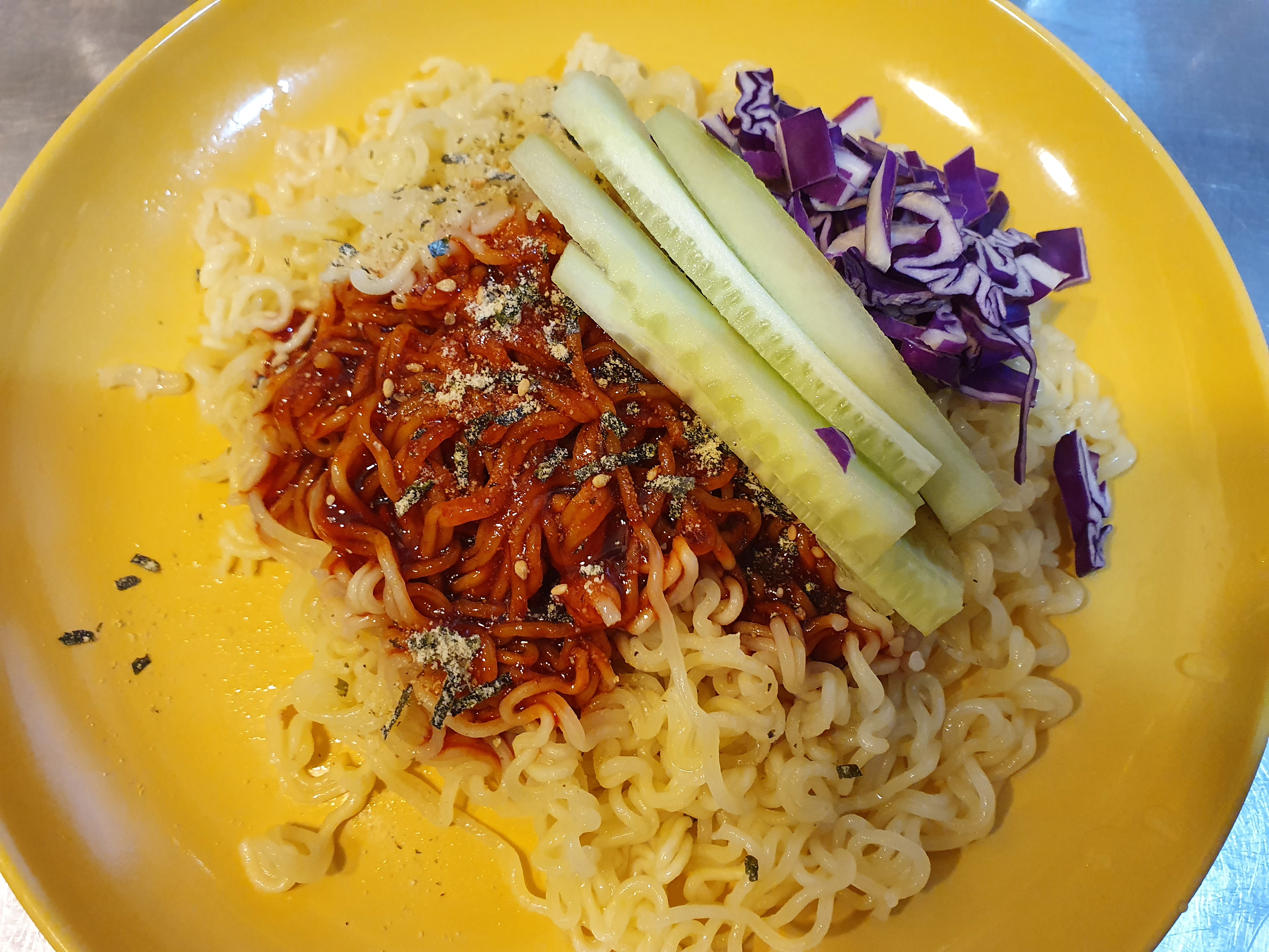 평소 같았으면 비빔면은 얼음물에 헹구지만